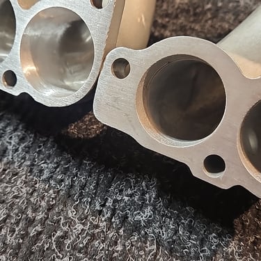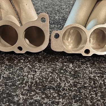 This is MAX level full porting on a pair of GM TPI runners to 1.7 inch diameter inlet flange interface and 39mm inner tube diameter, all existing dents large or small and damage will also be removed with this process. This service is unmatched and unavailable elsewhere the process goes beyond the traditional dent removal service and is geared toward a performance oriented service. This is the best and only option if you want to retain the stock look of the original TPI runners while gaining power. This port job will outflow most all the aftermarket cast runners, with most aftermarket cast runners the cast isn't consistent throughout they also have large blockages for the mounting bolts cast into them inside that reduce cross sectional area substantially