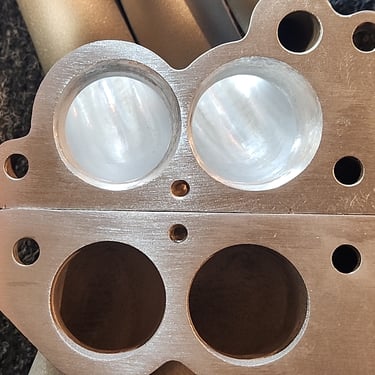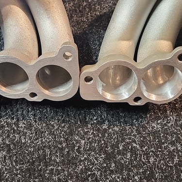 This is MAX level full porting on a pair of GM TPI runners to 1.7 inch diameter inlet flange interface and 39mm inner tube diameter, all existing dents and damage will also be removed with this process. This service is unmatched and unavailable elsewhere the process goes beyond the traditional dent removal service and is geared toward a performance oriented service. This is the best and only option if you want to retain the stock look of the original TPI runners while gaining power. This port job will outflow most all the aftermarket cast runners as a 39mm diameter bearing passes through each runner with ease, with most aftermarket cast runners the cast isn't consistent throughout they also have large blockages for the mounting bolts cast into them that reduce cross sectional area substantially
